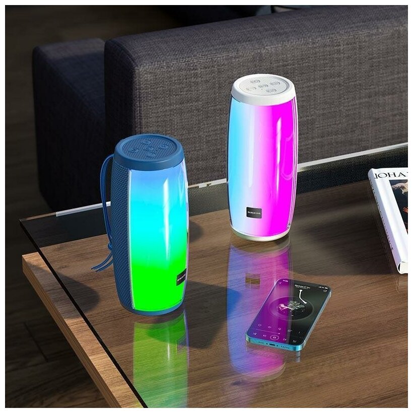 Лучшие цены. Компактная портативная беспроводная Bluetooth-колонка с умной подсветкой Borofone BR20 - идеальная акустическая система для повседневного прослушивания музыки, аудиолекций и звуковых дорожек при просмотре кинофильмов, а также для вечеринки, прогулки или просто в подарок. Качественное звучание в диапазоне частот 120 - 20000 Гц и возможности настройки эквалайзера на устройстве, передающем звук, позволяют получить максимальное удовольствие от воспроизведения. Магазины в вашем городе.