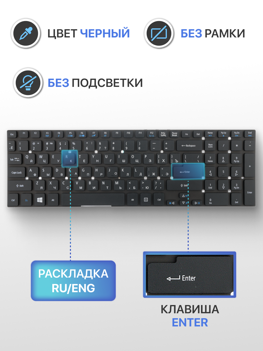 Вытяжки Клавиатура для Acer Aspire V3-571G, V3-771G, E5-571G, E1-570G, E1-522, 5755, 5755G, V3-572G, 5830TG, E5-521, V3-551G, Extensa 2510, MP-10K33SU-6981W