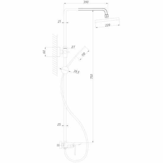 | Комплектация | ручной душ (душевая лейка) / верхний душ (тропический) / смеситель / стойка / штанга / душевой шланг / крепление ручного душа |