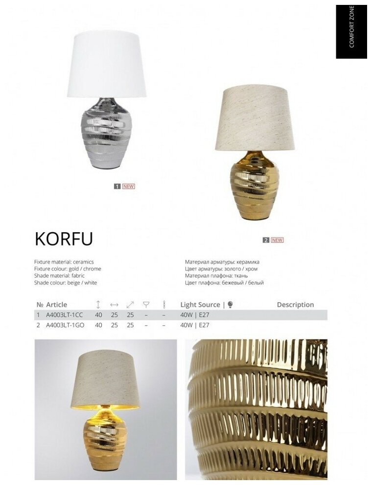 Настольная лампа ArteLamp KORFU A4003LT-1CC 5 990 ₽ Подробнее