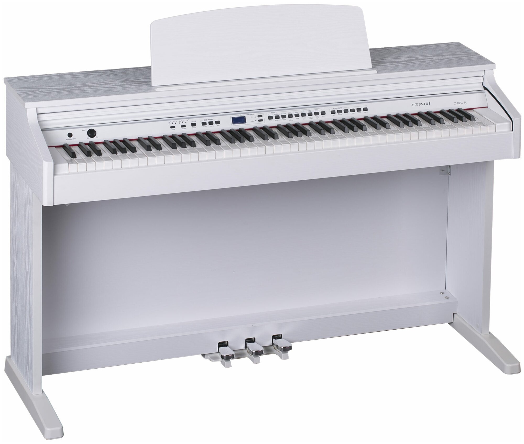 Лучшие цены. Характеристики товара Цифровое пианино Orla CDP 101 белый матовый Общие характеристики Тип цифровое пианино Клавиатура Количество клавиш 88 Молоточковая механика есть Размер клавиш полноразмерные Звуковые контроллеры Звуковые контроллеры средняя (sostenuto) педаль, левая (una corda) педаль, правая (damper) педаль Педали встроенные Конструкция Особенности конструкции дисплей, крышка клавиатуры Корпус классический Встроенная акустическая система есть Мощность встроенного усилителя 12 Вт Ширина 1370 мм Высота. Магазины в вашем городе.