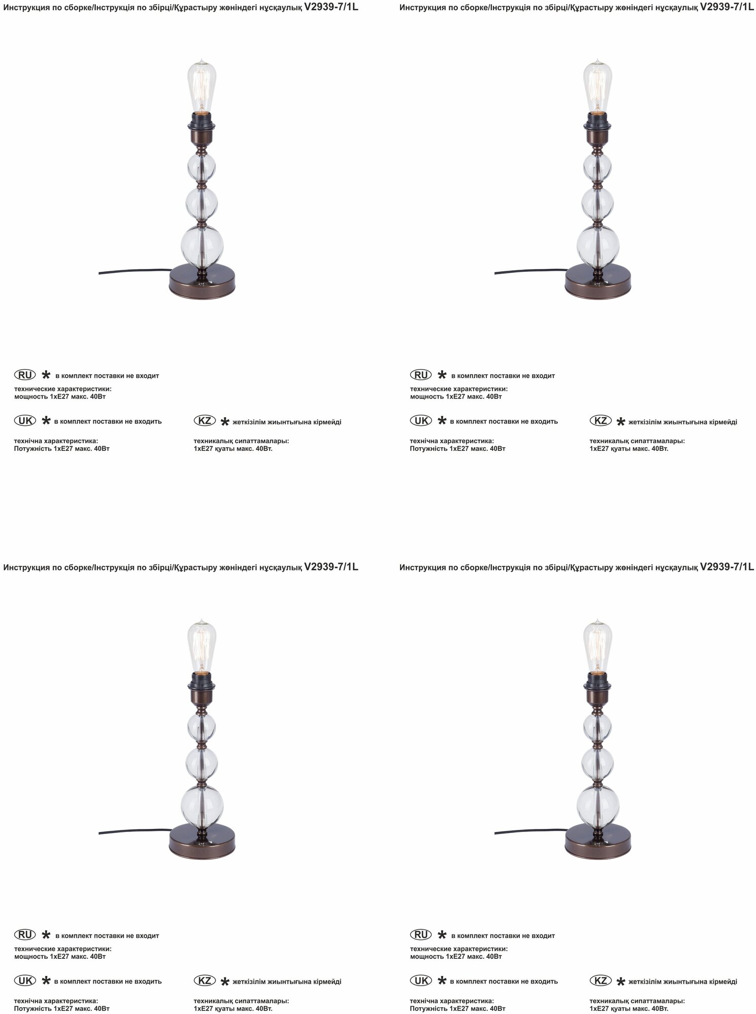 Светильник настольный V2939-1/1L, 1xE27 макс. 40Вт