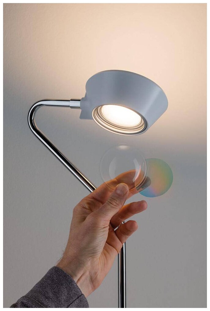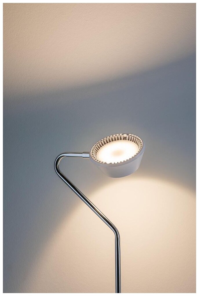 Лучшие цены. Лампа настольная Paulmann Ramos H440 8Вт 340лм 2700К LED IP20 230В Белый матовый/Хром Пластик/Металл Сенсорный Димм 70921. Лампа Ramos излучает свет вверх и вниз. Головку лампы можно поворачивать на угол до 355 градусов, так что она может легко освещать стену и тем самым создавать непрямое освещение. С помощью стопорного кольца, дихроичная пленка может быть прикреплена к стеклянной линзе в нижней части, которая обеспечивает специальные световые акценты. Магазины в вашем городе.