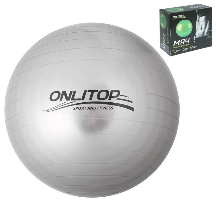 Фитбол ONLITOP, диаметр 75 см, вес 1000 г, антивзрыв, цвет серый