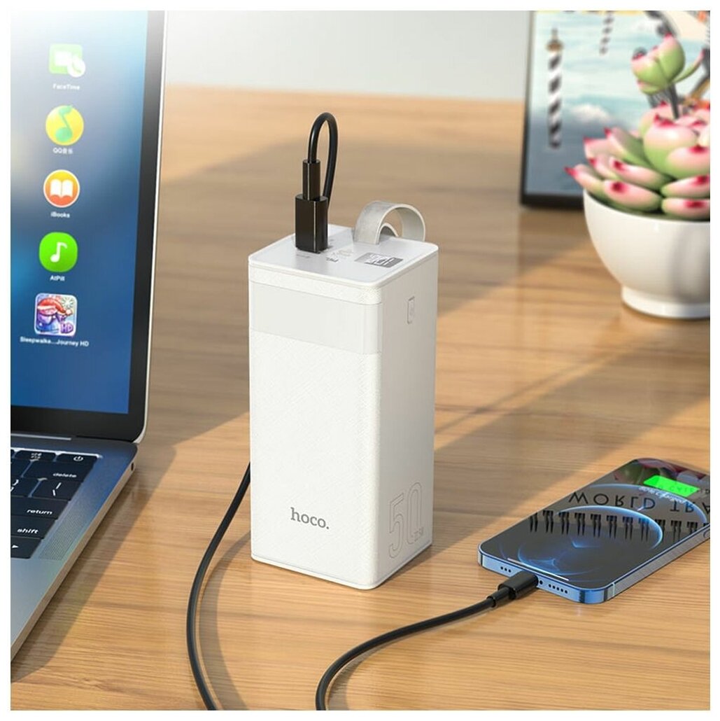 Powerbank Внешний аккумулятор повербанк Hoco J86A на 50000 mAh. 22.5W QC3.0 PD20W. Белый