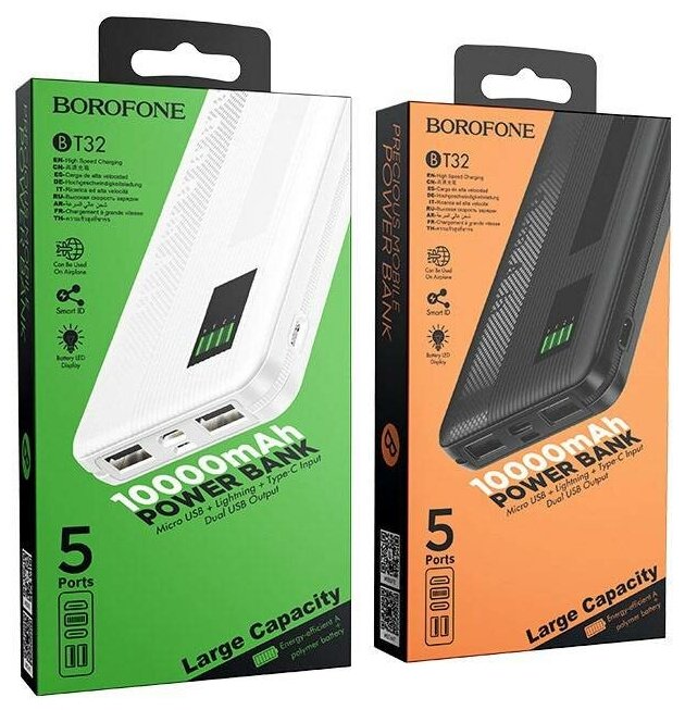 Внешнийаккумулятор10000mAh2USB2.0ALi-polбатареяBorofoneBT32