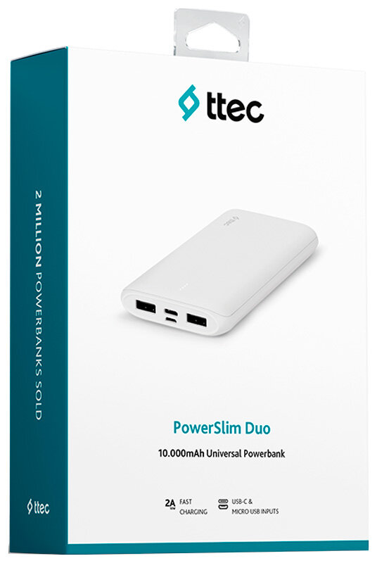 Powerbank Внешний аккумулятор Ttec 10.000mAh PowerSlim Duo 10 Вт Белый 2BB163B