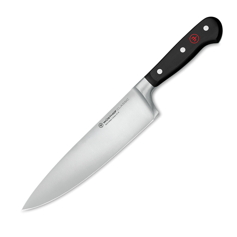 Лучшие цены. Коллекция невероятно острых ножей классического дизайна от немецкой марки Wuesthof. Каждый клинок серии Classic изготовлен из цельного куска нержавеющей легированной стали с высоким содержанием углерода. Удобная рукоять из нескользящего пластика — полиоксиметилена, закреплена тремя заклёпками, а хвостовик идёт до самого её конца. Лезвия клинков серии Classic затачиваются вручную и имеют индивидуальный код, гарантирующий их подлинность. Магазины в вашем городе.
