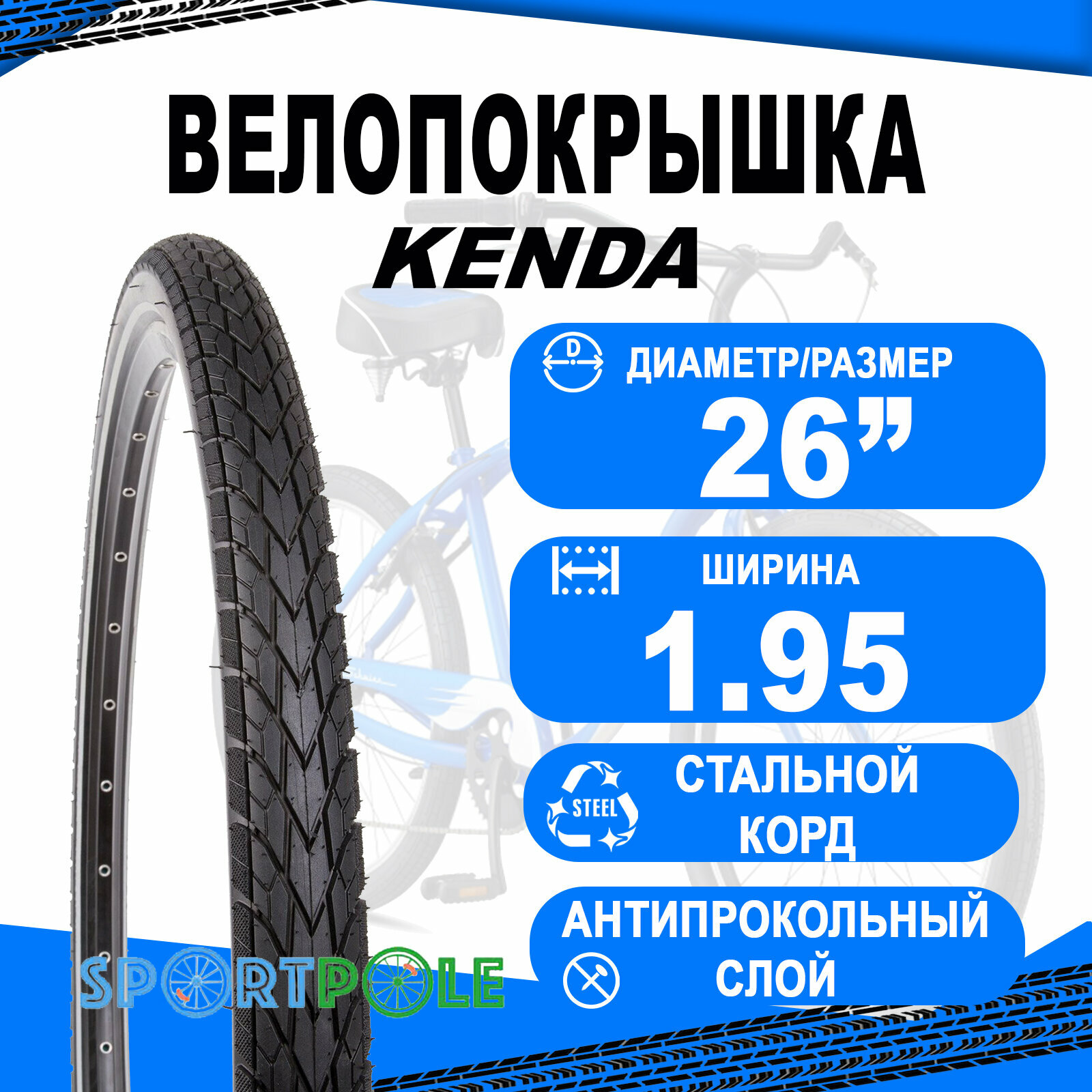 Покрышка велосипедная 26" х 1.95 (50-559) K1172 KHAN II антипрокольные KENDA
