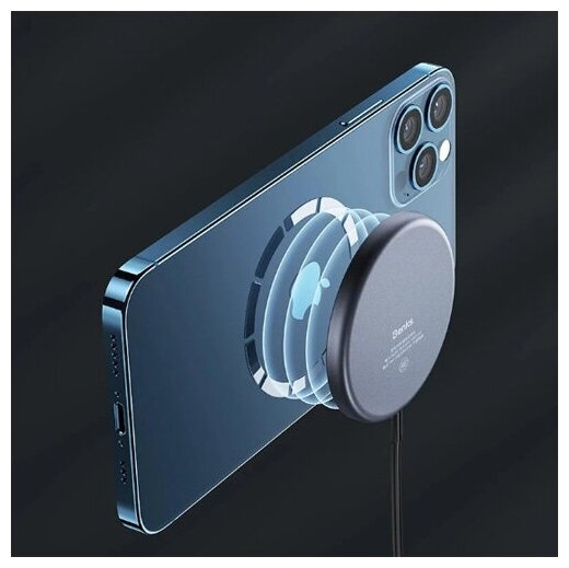 Зарядное устройство Магнитное беспроводное зарядное устройство Benks W06 15W Magnetic Wireless Charger, поддержка быстрой зарядки, черный