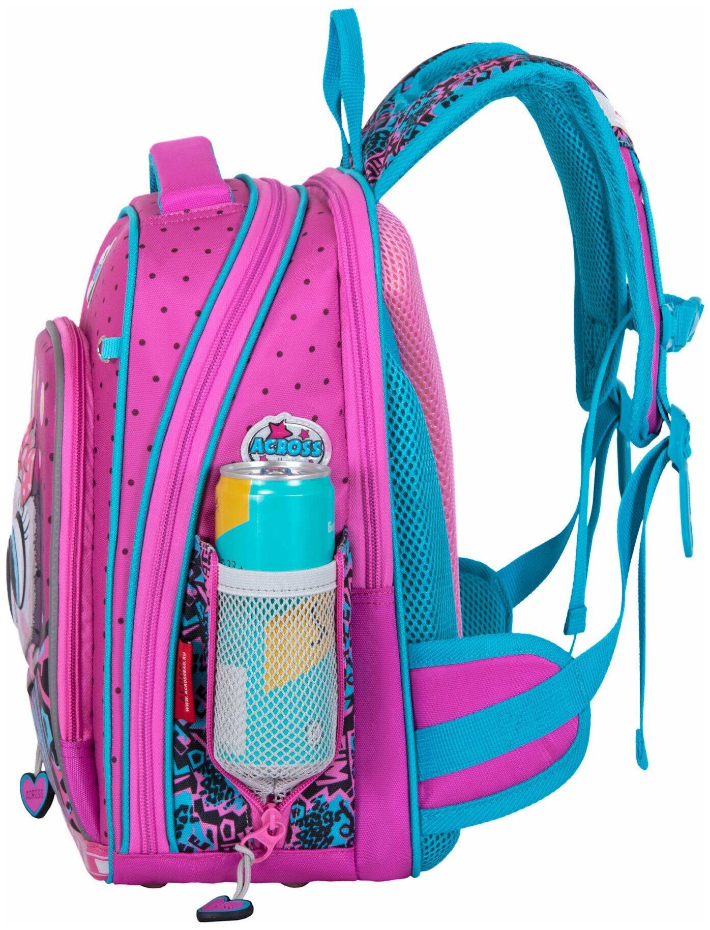Лучшие цены. Ранец Across HK2021-8 выполнен из прочного, износостойкого, водоотталкивающего материала. По всему периметру расположены светоотражающие элементы. Ранец имеет три основных отделения, внутри которых есть плавающие жесткие разделители и дополнительный сеточный отдел. Нужные каждой девочке важные мелочи, любимые ручки и телефон удобно хранить в карманах, вшитых в специальный блок. Для школьных принадлежностей юной модницы предусмотрены ещё два боковых кармана на молнии. Магазины в вашем городе.