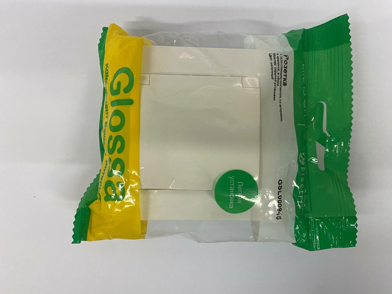 SE Glossa Молочный Розетка с/з со шторками с крышкой IP20 (в сборе)