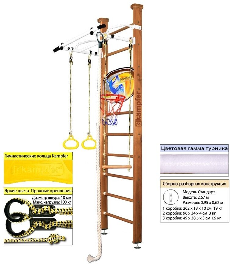 Шведская стенка Kampfer Helena Ceiling Basketball Shield (№2 Ореховый Стандарт белый турник)