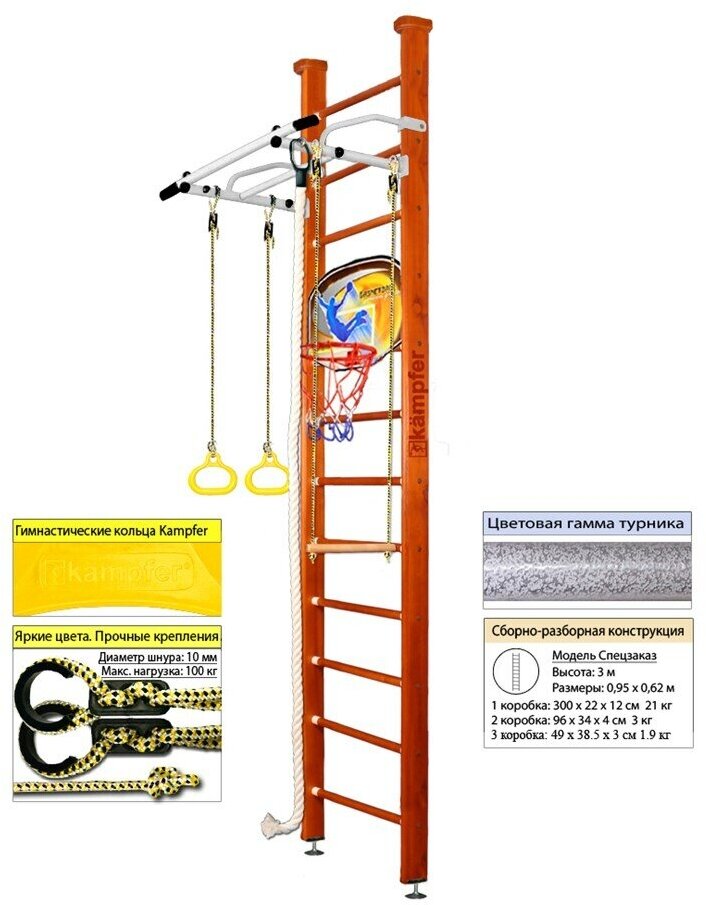 Шведская стенка Kampfer Helena Ceiling Basketball Shield (№2 Ореховый Стандарт белый турник)