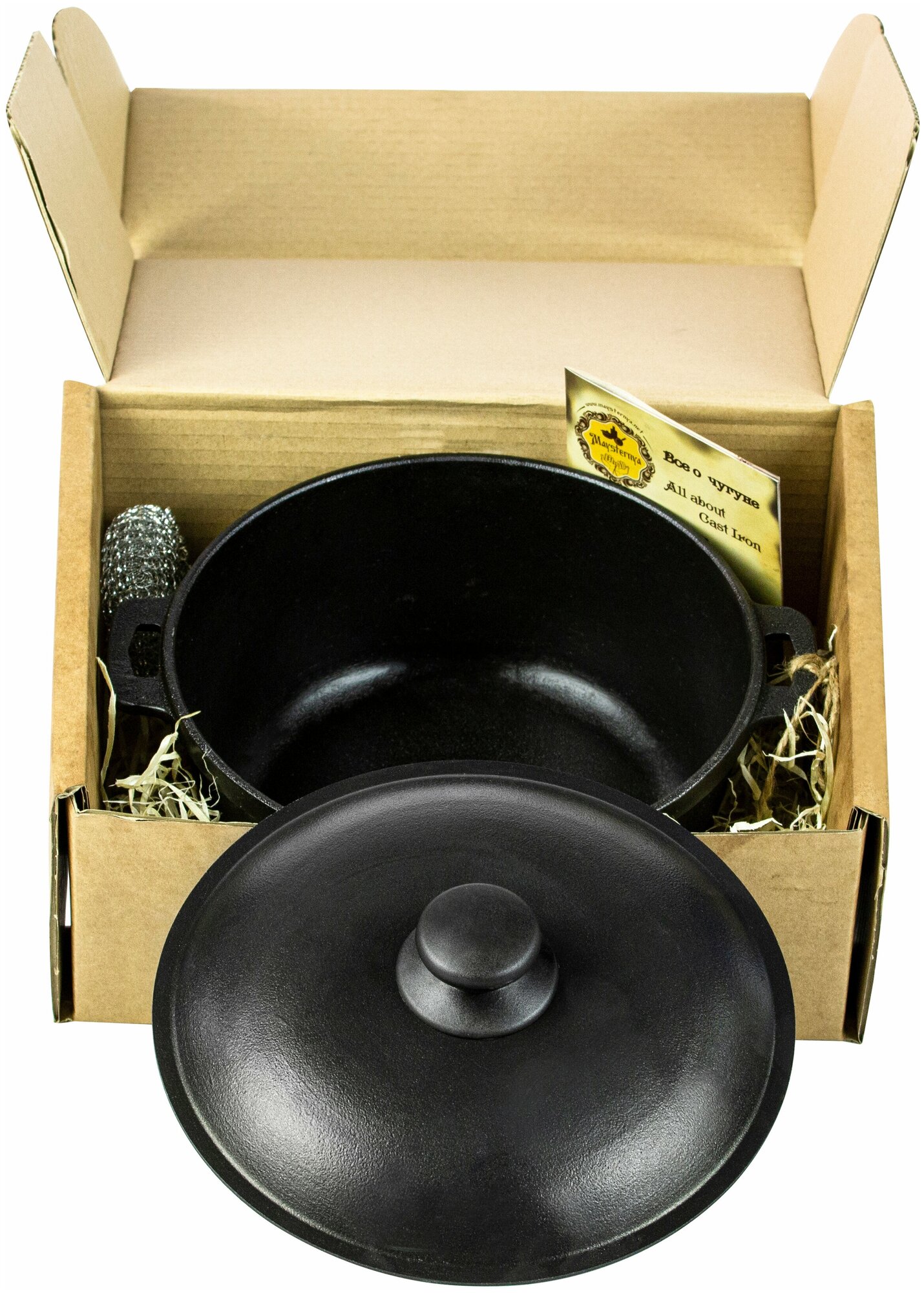 Лучшие цены. В чугунной кастрюле можно приготовить фаршированный перец, тушеную картошку, каши, плов, мясо и многое другое. Профессиональные повара говорят, что настоящий плов можно приготовить только в чугунном казане. Посуда от ТМ "Maysternya" является экологически чистым продуктом. При нагревании не выделяет вредных веществ, а наоборот - обогащает Вас железом. Около 70% всего железа организма входит в состав крови. Магазины в вашем городе.