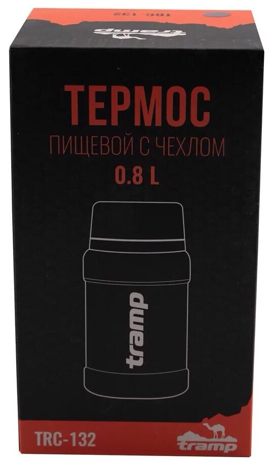 Термос Tramp с широким горлом 0.8 л, TRC-132, с сумкой, нержавеющая сталь/пластик, черный