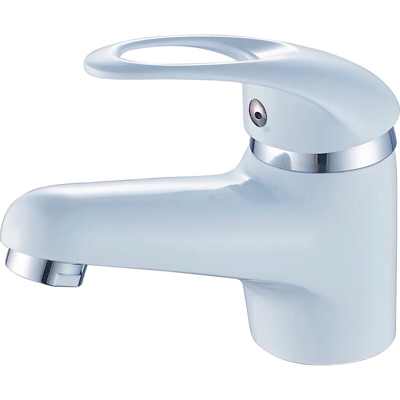 Лучшие цены. Смеситель для раковины Cron CN1003-8. Характеристики: - Цвет: белый. - Поверхность: глянцевая. - Материал: силумин. - Управление: однорычажное. - Механизм: керамический картридж 40 мм. - Тип излива: фиксированный. - Тип подводки: гибкая. - Стандарт подводки: 1/2. - Крепление: шпилька. - Монтаж: на раковину. В комплекте поставки: смеситель. Магазины в вашем городе.