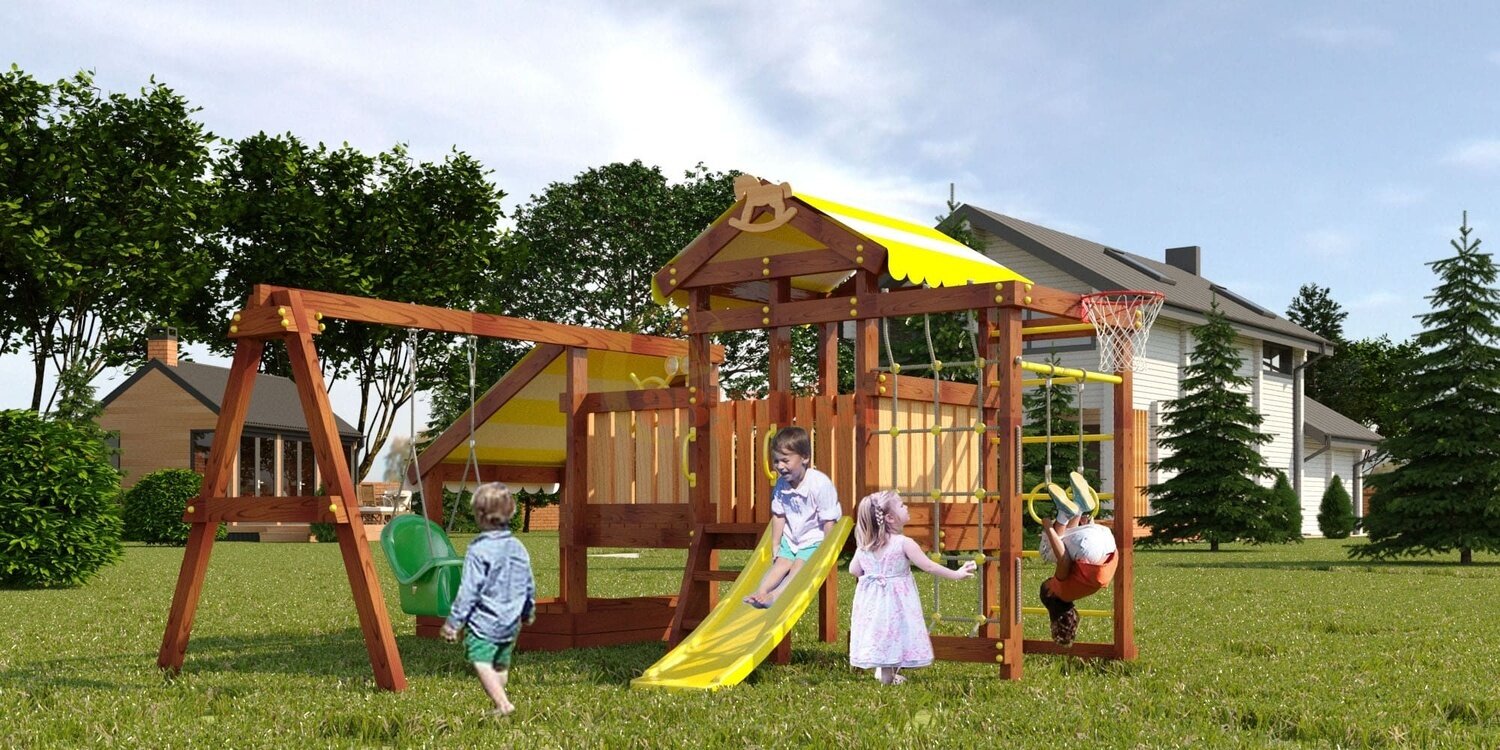 Лучшие цены. Детская площадка Савушка-Baby - 12 (Play) –это игровой домик с крышей, горка пластиковая, балкон с игровыми элементами, шведская стенка, сетка-лазалка, турник металлический, кольца, качельный модуль, бинокль, руль, баскетбольное кольцо, песочница. Дополнительно есть удобные ступеньки и защитные бортики, изделие очень безопасное. Древесина качественно отшлифована и покрыта лаком, чтобы ребенок не получил занозу. Все материалы имеют соответствующие сертификаты качества. Магазины в вашем городе.