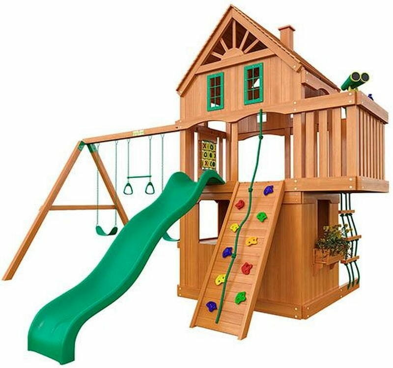 | Компоненты | лестница / веревочная лестница / скалодром / гимнастические кольца / трапеция / 2 качели / домик / стол |