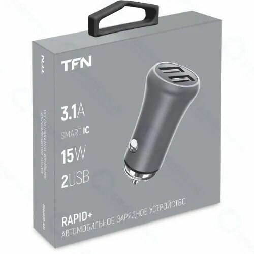Зарядное устройство автомобильное TFN Rapid+ 2xUSB 3.1A 15W, серый / Разветвитель прикуривателя/ 2 разъема