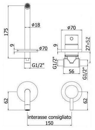 Смеситель для кухни, ванны, раковины / Кран для ванной Paffoni Light LIG006CR70 встраиваемый (с внутренней частью)