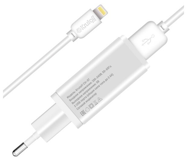 Зарядное устройство Krutoff / Сетевое зарядное устройство (СЗУ) CH-01L 1xUSB, 1A + кабель Lightning (white)