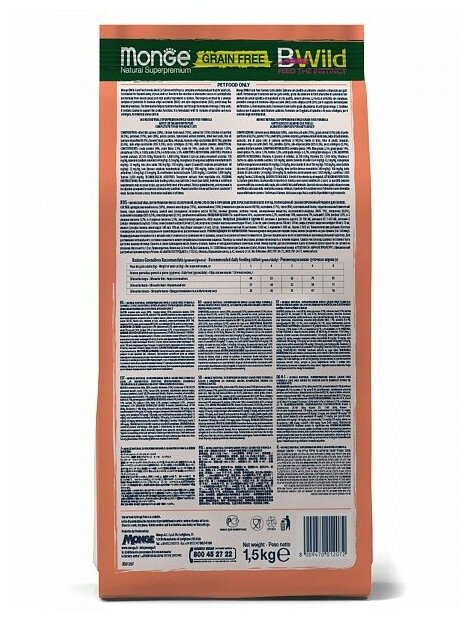 Корм для кошек Monge Cat BWild GRAIN FREE беззерновой корм из лосося и гороха для взрослых кошек 1,5 кг