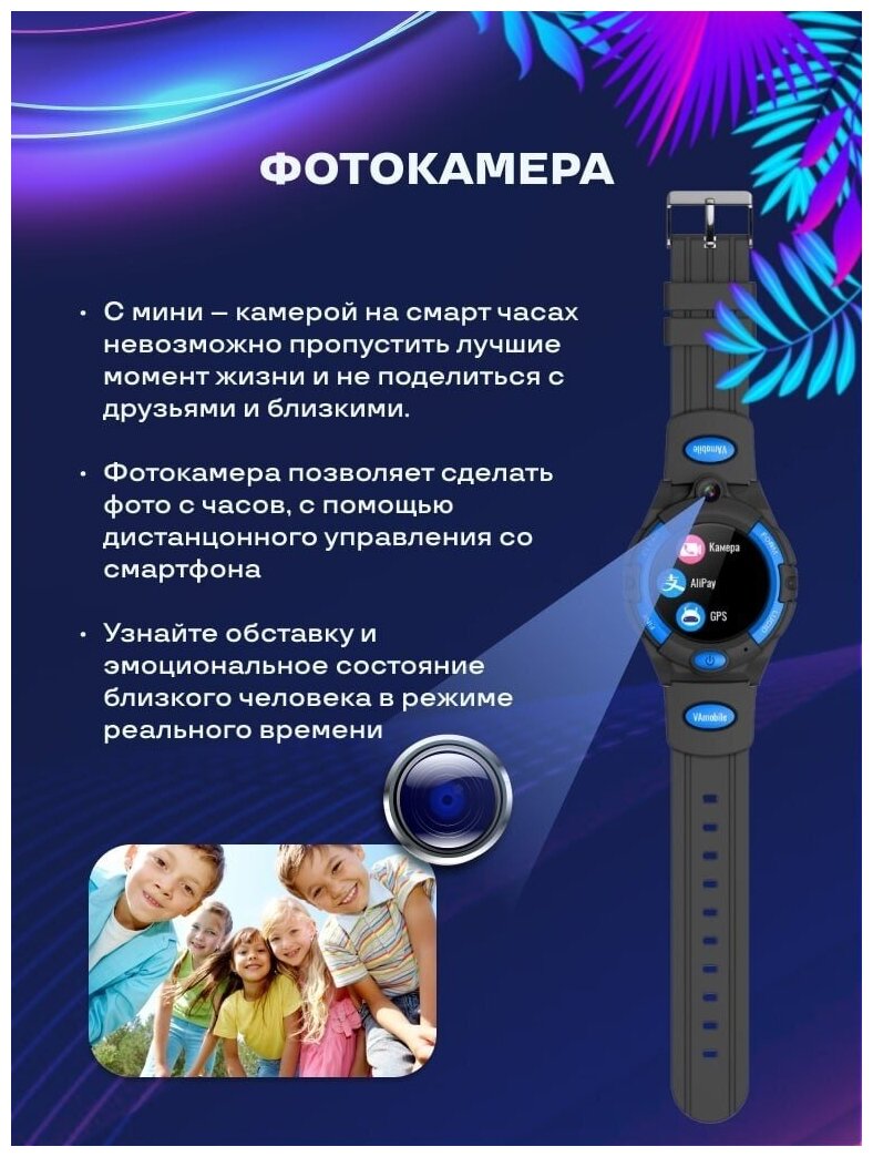 Смарт часы и фитнес браслеты Детские Умные круглые часы NEW WIRELESS 4G с GPS / Умный смарт браслет / Сим карта Nano / Черный