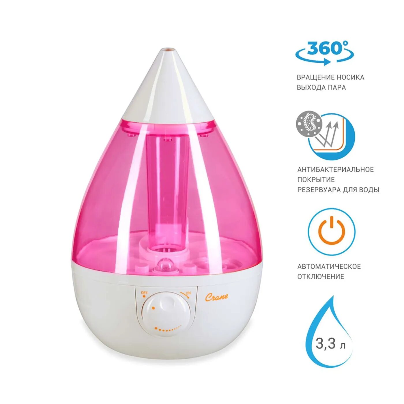 Увлажнитель воздуха Увлажнитель воздуха ультразвуковой Crane EE-5301TP капля бело-розовый