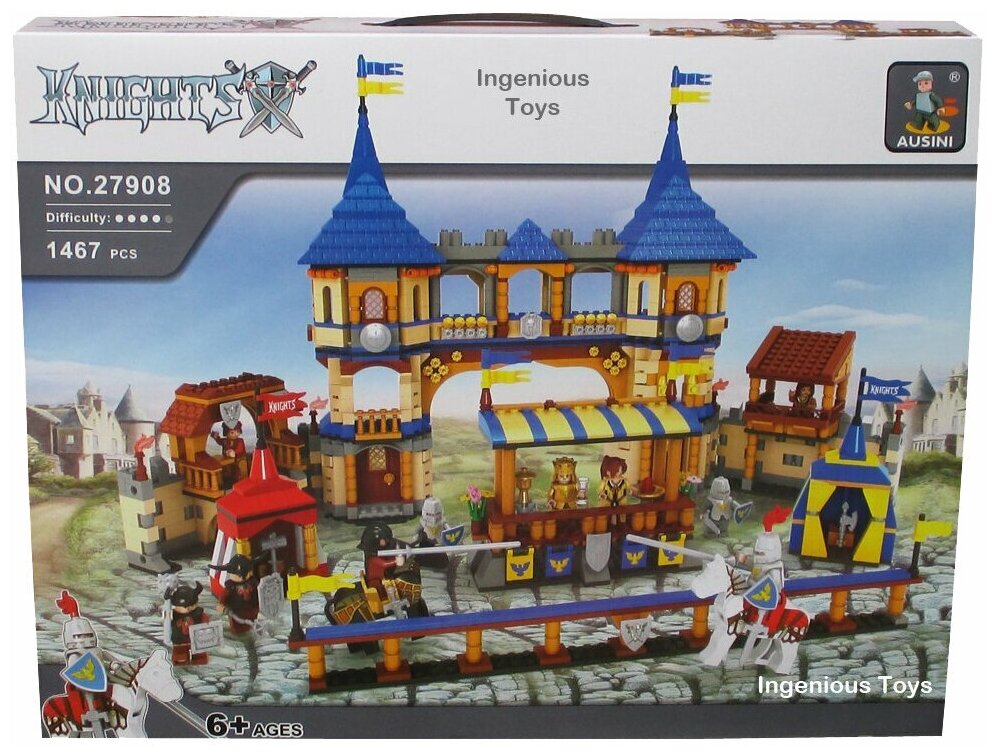 Лучшие цены. Конструктор Ausini "Рыцарский турнир" состоит из 1467 элементов, с помощью которых ребенок сможет построить площадку для проведения рыцарских турниров с различными строениями. В комплекте фигурки рыцарей, короля и прекрасной дамы. Детали конструктора легко соединяются между собой, а также совместимы с конструкторами других марок. Малыш часами будет играть с этим конструктором, придумывая разные истории и комбинируя детали. Магазины в вашем городе.