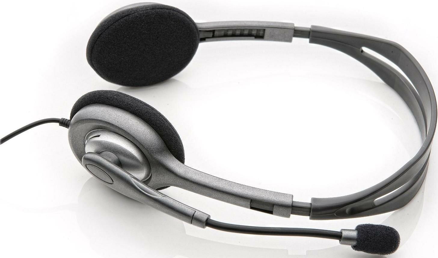 Logitech Гарнитура H111 Stereo Headset, длина кабеля 1,8 м, разъем 3,5 мм, микрофон с функц. шумоподавления, серый.