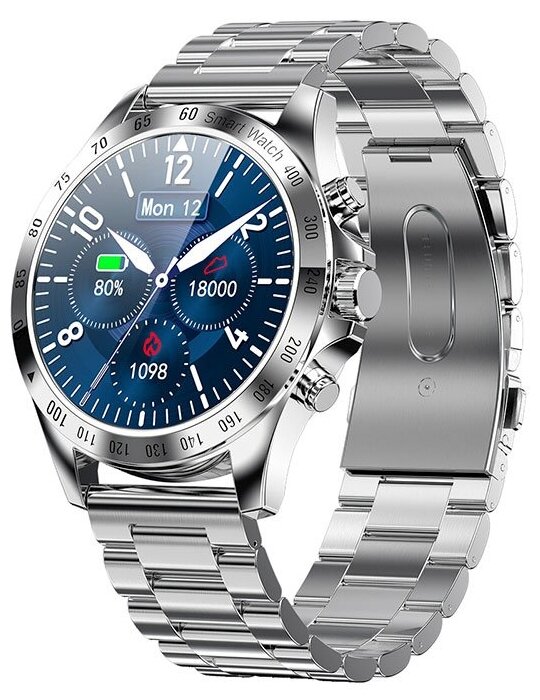 Лучшие цены. KingWear LW09 – мужские влагозащищенные смарт часы для тех, кто соскучился по механической «классике». Внешне они не отличаются от своих собратьев «до эпохи цифровизации»: массивный металлический корпус, классический круглый циферблат, колесико и кнопки справа. При этом электронная начинка smart watch KingWear LW09 соответствует высоким современным требованиям, предъявляемым к этим устройствам. Здесь есть и фитнес трекер, и датчик сердечного ритма, оксиметр, управление плеером и многое другое. Магазины в вашем городе.