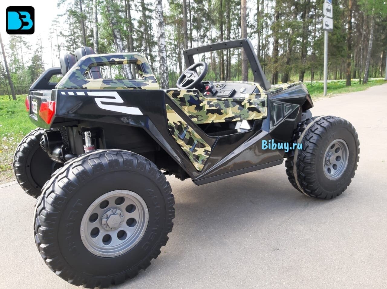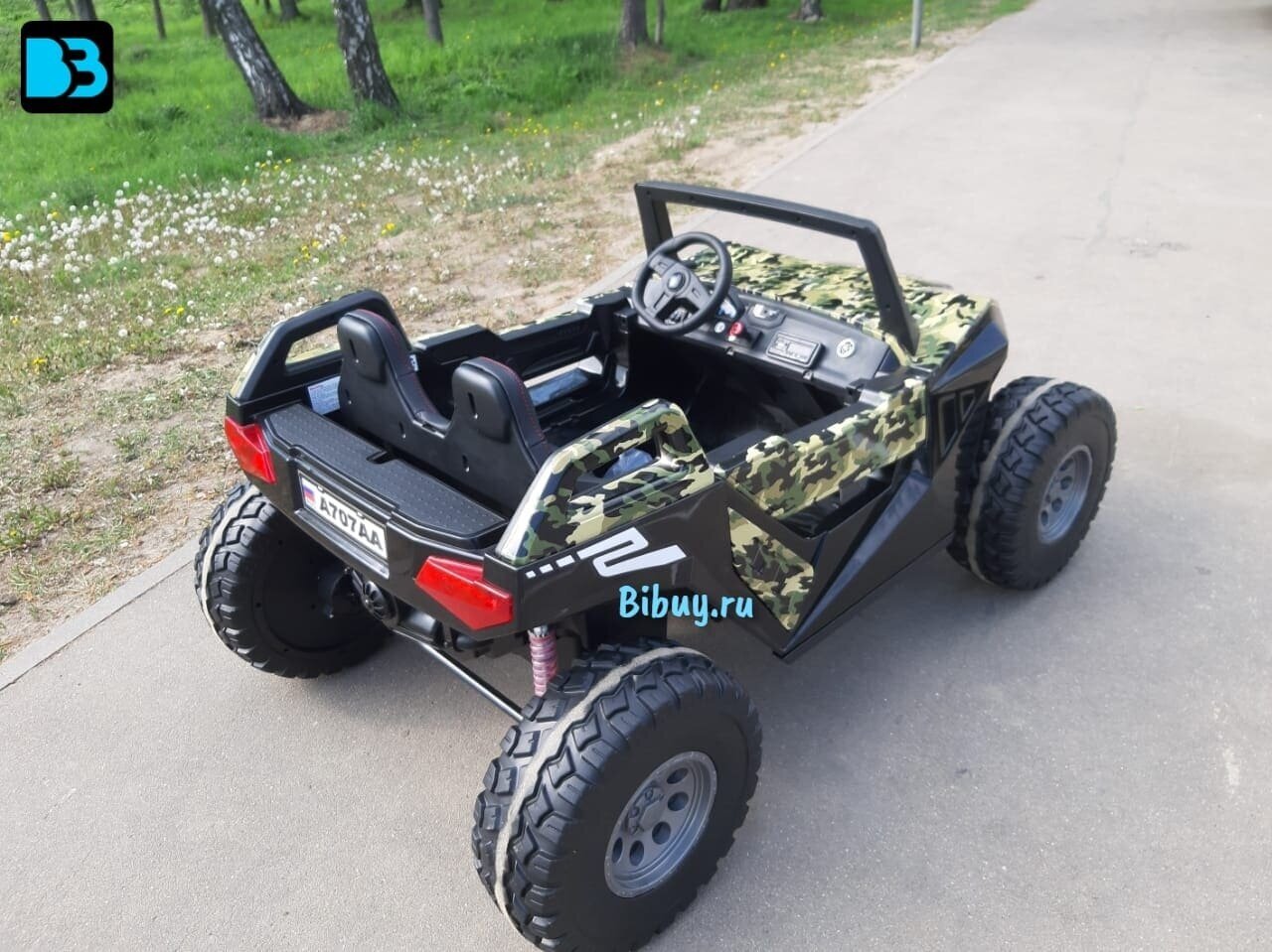 Детский электромобиль BAGGY, двухместный 4WD (нагрузка 100 кг.) - A707AA зеленый камуфляж