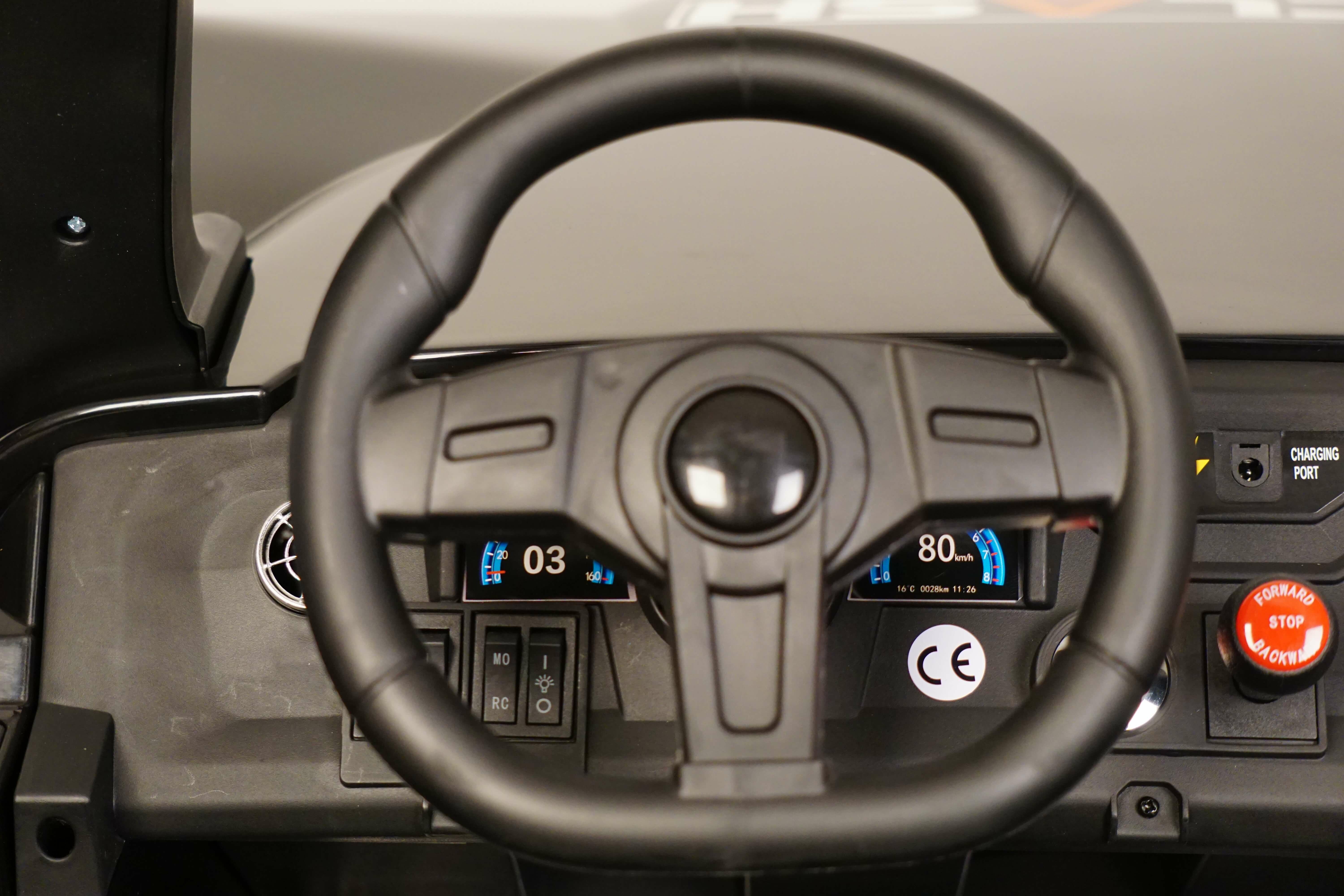 Лучшие цены. Для детей от 2 до 10 лет. Аккумулятор: 2*12V/7Ah. Редуктор: 4*55W(24V/12.000об) . Включение: кнопка. Скорость: 2-5 км/ч, две скорости вперед, одна назад. Световые эффекты: диодные огни, фары передние, задние фары (включаются отдельной кнопкой). Звуковые эффекты: музыкальный руль - звук клаксона/мелодии заводские. Пульт управления: индивидуальный (настраивается по Bluetooth). Медиа-панель: microSD-вход, USB-вход, Bluetooh, индикатор заряда батаери. Амортизаторы передние/задние. Колеса: каучуковые. Магазины в вашем городе.