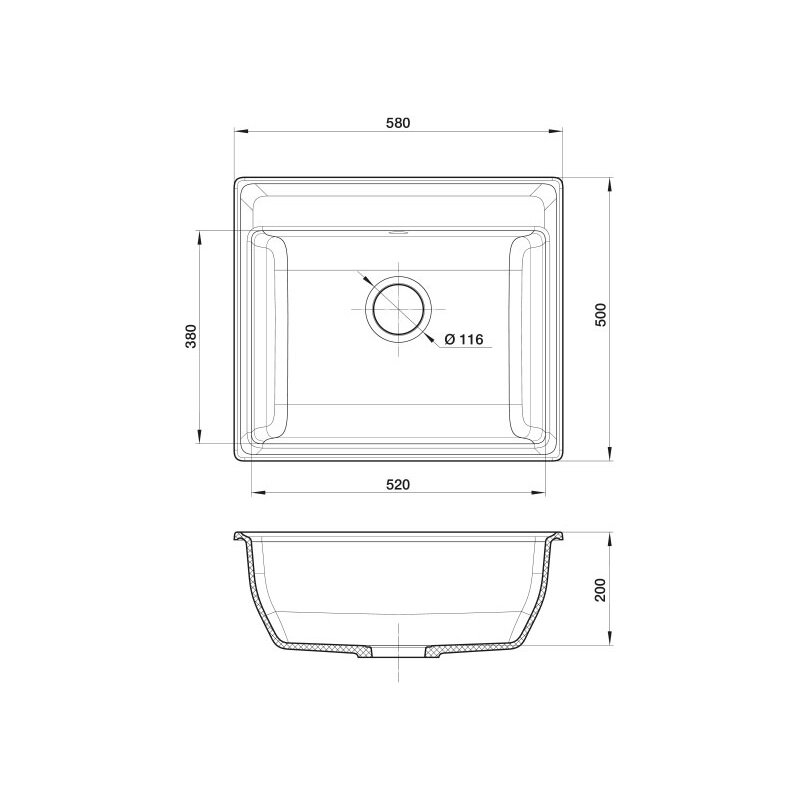 GRANFEST Мойка VERTEX 580 1-чаша 580*500мм черный арт.GF-