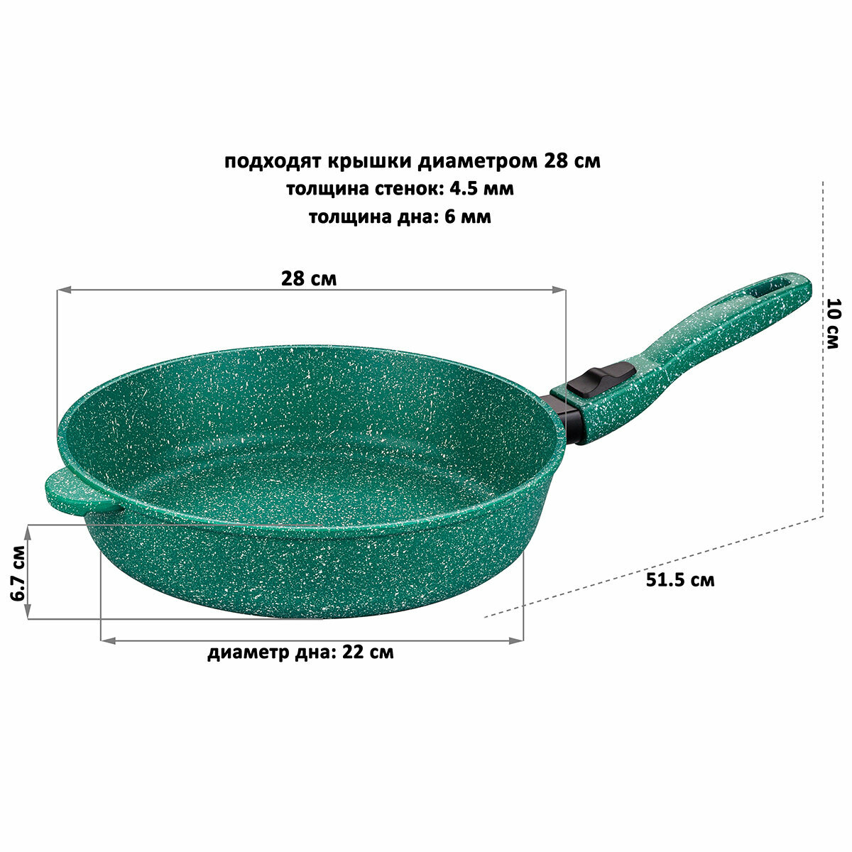 Сковородка Сковорода глубокая 28 см Elan Gallery гармония вкуса Изумруд, со съёмной ручкой