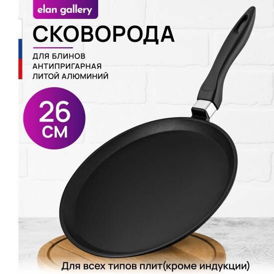 Сковородка Сковорода блинная Elan Gallery гармония вкуса черный оникс, несъёмная ручка, 26 см 120401