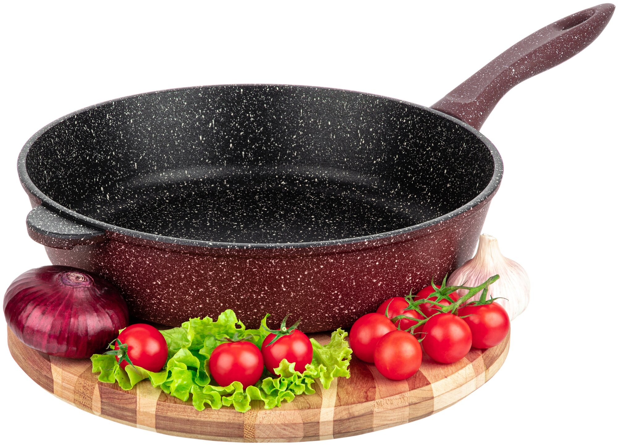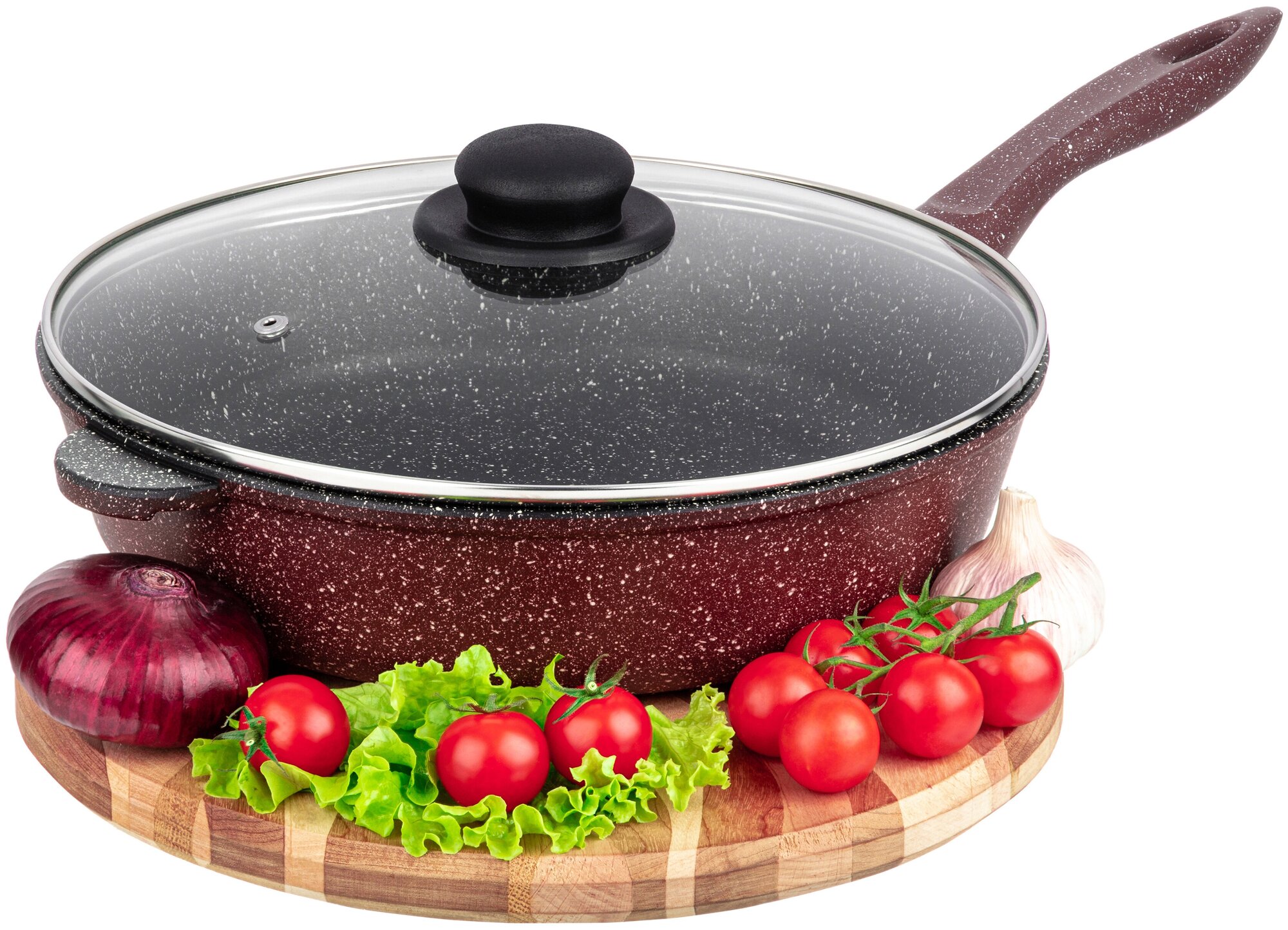 Сковородка Сковорода глубокая 28 см Elan Gallery гармония вкуса Рубиновый дуэт с крышкой D28, с несъёмной ручкой