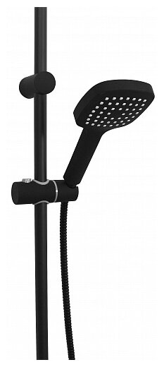Лучшие цены. Душевая система в цвете черный матовый: верхний душ (230х230 мм) создаёт эффект тропического дождя, что дарит непередаваемые эмоции во время ежедневных банных процедур. Ручной душ 120 мм (1 режим) на гибком полутораметровом шланге (в металлической оплетке) с защитой от перекручивания. Держатели верхнего и ручного душа с регулировкой угла наклона, штанга 970 мм. Подвижные детали отличаются долговечностью. Магазины в вашем городе.