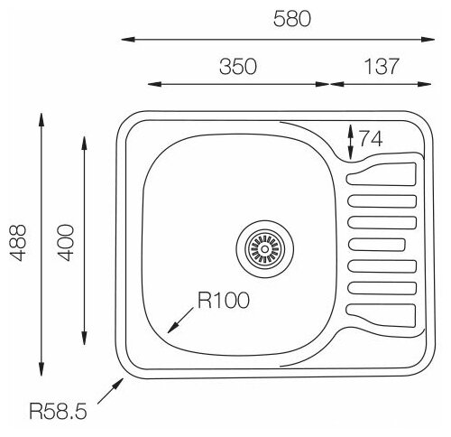 Лучшие цены. Кухонная мойка TopZero Comfort COP580.488. GT8K. Характеристики: - Цвет: нержавеющая сталь. - Материал: нержавеющая сталь. - Поверхность: полированная. - Форма: прямоугольная. - Ориентация: универсальная. - Размеры (ШхВхГ): 580х190х488 мм. - Размеры чаши (ШхГхД): 350х175х400 мм. - Тип установки: встраиваемый сверху. - Монтажная длина: 350 мм. - Монтажная ширина: 400 мм. - Ширина монтажной тумбы: 450 мм. - Толщина стали: 0.8 мм. - Диаметр сливного отверстия: 90 мм. В комплекте поставки: - Кухонная мойка. Магазины в вашем городе.