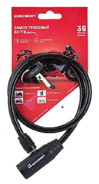 Велозамок / блокиратор Велосипедный противоугонный замок аллюр ВС-Т 8 (650 мм) тросовый (3 ключа)