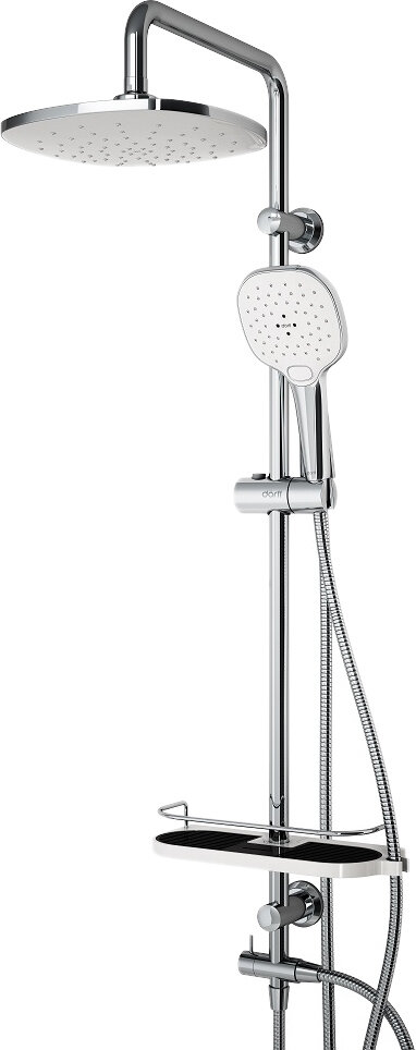 | Комплектация | ручной душ (душевая лейка) / верхний душ (тропический) / смеситель / стойка / штанга / душевой шланг / крепление ручного душа / полка |
