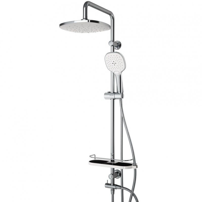 Лучшие цены. Душевая система Dorff Prime D0744010. Характеристики: - Цвет: хром. - Поверхность: глянцевая. - Цвет полки: черный, белый. - Материал: латунь, пластик. - Картридж: керамический. - Диаметр верхнего душа: 250 мм. - Ручной душ: 5 режимов. - Диаметр ручного душа: 120 мм. - Переключатель режимов ручного душа: Simple Switch Push. - Длина душевой штанги: 1040 мм. - Длина душевого шланга: 1750 мм. - Защита от перекручивания шланга. Магазины в вашем городе.