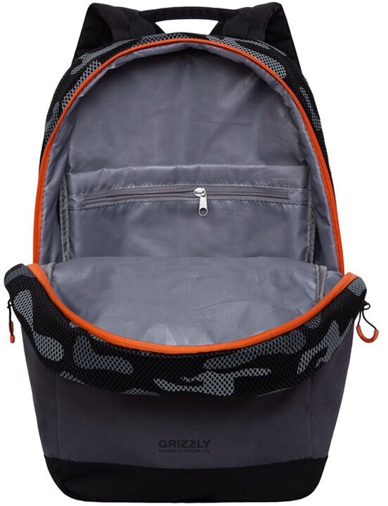 Рюкзак Рюкзак Grizzly, 27*43*15см, 1 отделение, 3 кармана, укрепленная спинка, черный-серый RQ-010-1/2