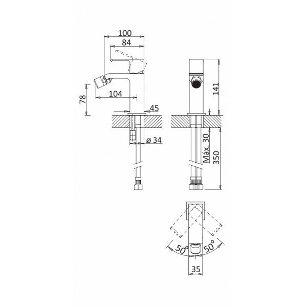 Смеситель на биде однорычажный, без донного клапана CEZARES PORTA-BS1-01-W0