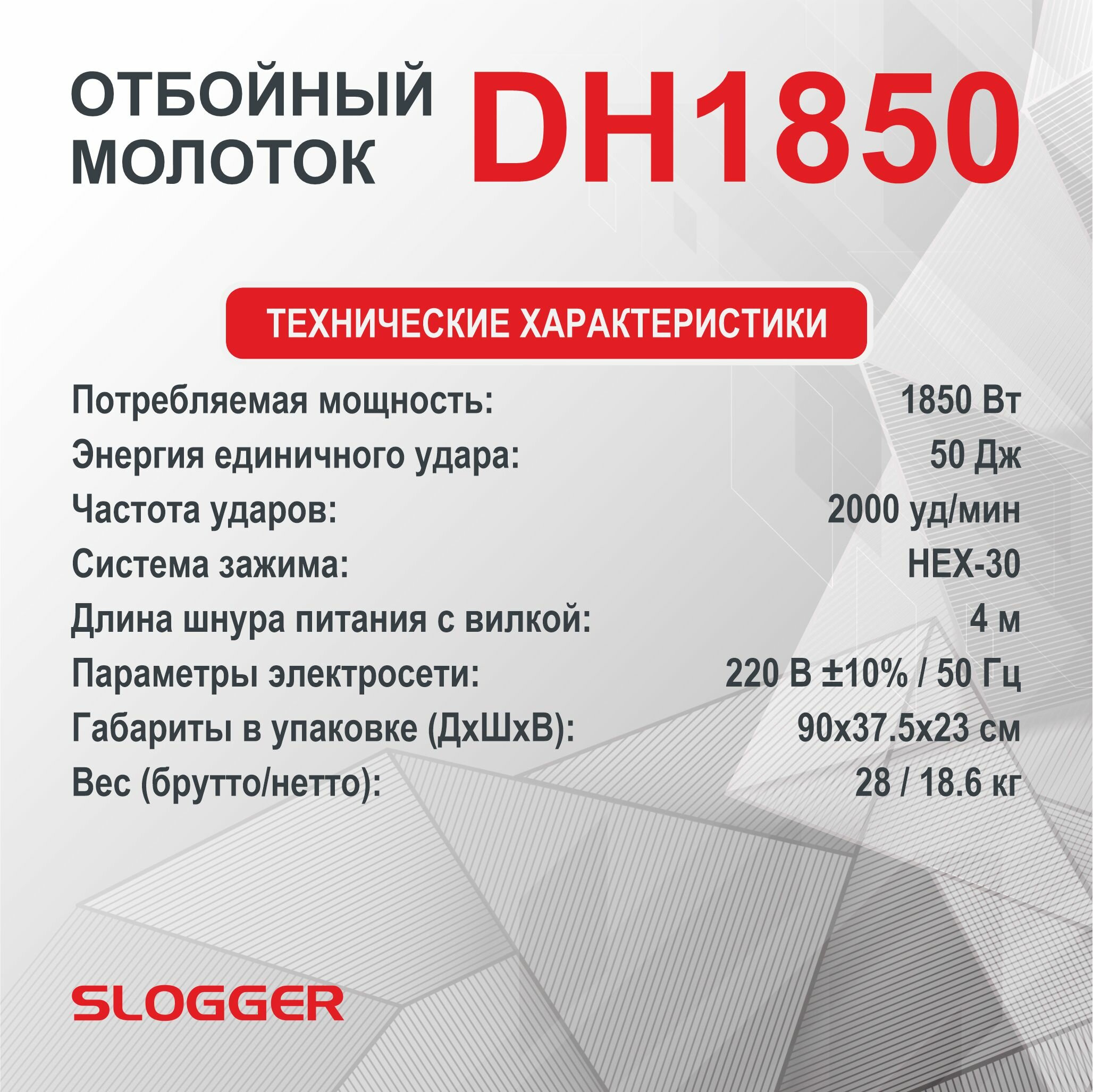Отбойные молотки Отбойный молоток Slogger DH1850