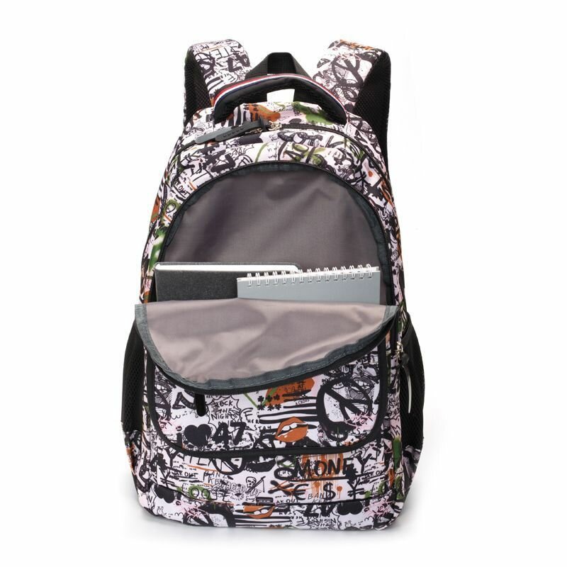 Рюкзак школьный TORBER CLASS X, черно-белый с рисунком T2743-WHI-BLK