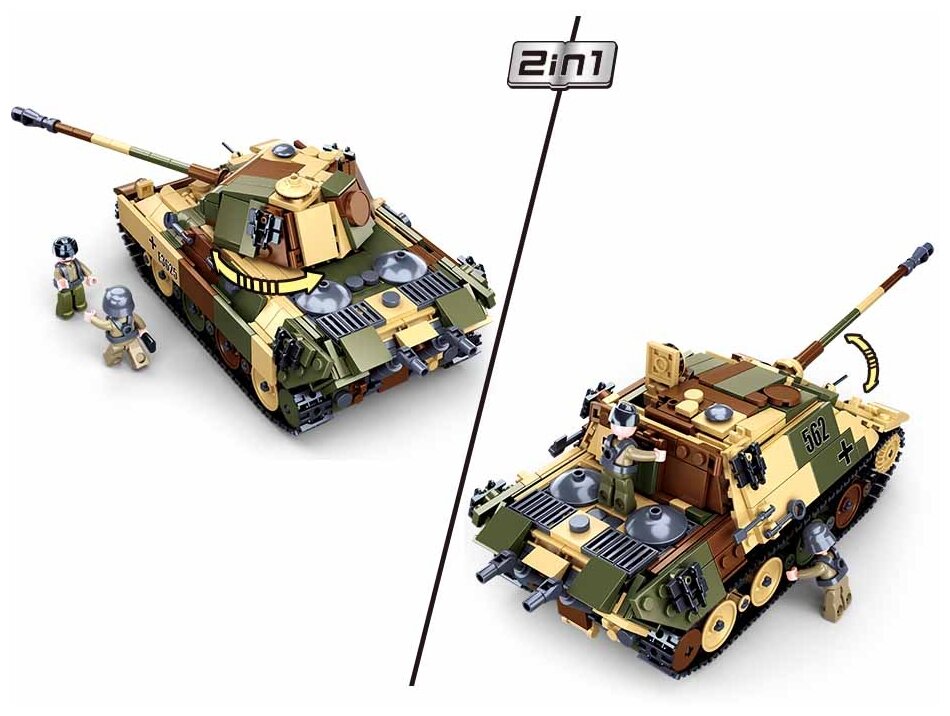 Конструктор SLUBAN серия "Армия" / Танк Пантера 2 в 1 M38-B0859 пластиковый детский для мальчиков (725 деталей)