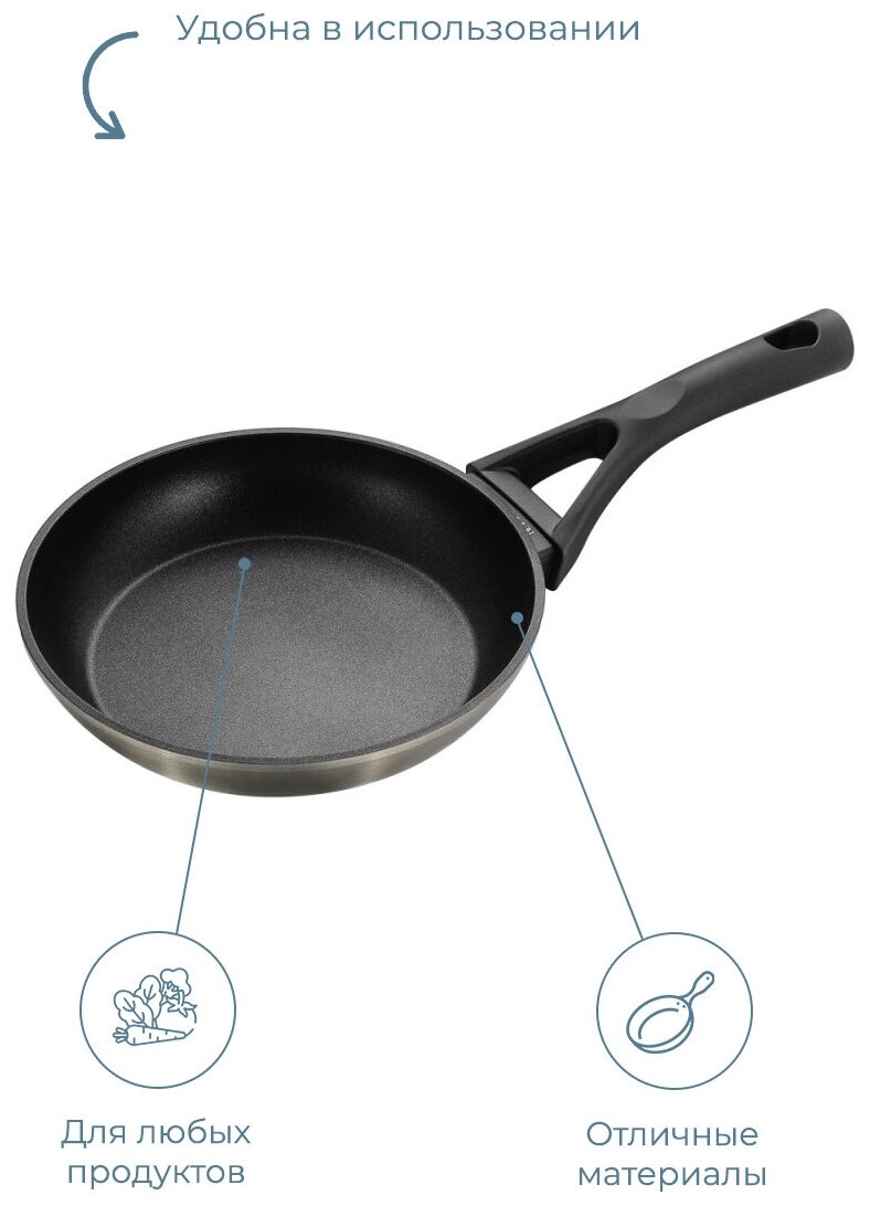 Лучшие цены. Коллекция Venus - это новейшие технологии и стильный минималистичный дизайн, благодаря которому Вы получите удовольствие и легкость в приготовлении пищи. Рукоятка изготовлена из мягкого на ощупь бакелита с хромированной заглушкой и матовой поверхностью. Внутреннее покрытие антипригарное, черного цвета, внешнее - огнеупорное, цвет: темно-серый перламутр. Сковорода имеет полностью индукционное дно. Подходит для всех типов плит: газовых, электрических, керамических, галогеновых, индукционных плит. Магазины в вашем городе.