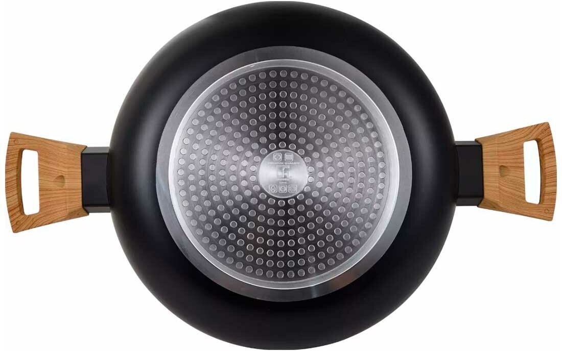 Лучшие цены. Универсальная коллекция из прессованного алюминия, с износостойким антипригарным покрытием. Эргономичная пластиковая ручка Soft touch стилизованная под дерево, не нагревается и не скользит в руке. Устойчивое антипригарное покрытие безопасно в употреблении и позволяет готовить с использованием минимального количества жира. Антипригарное покрытие Ilag Premium. Магазины в вашем городе.
